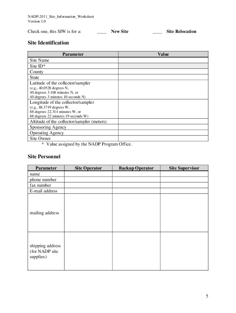 Get the free NADP Site Information Worksheet v 2-0