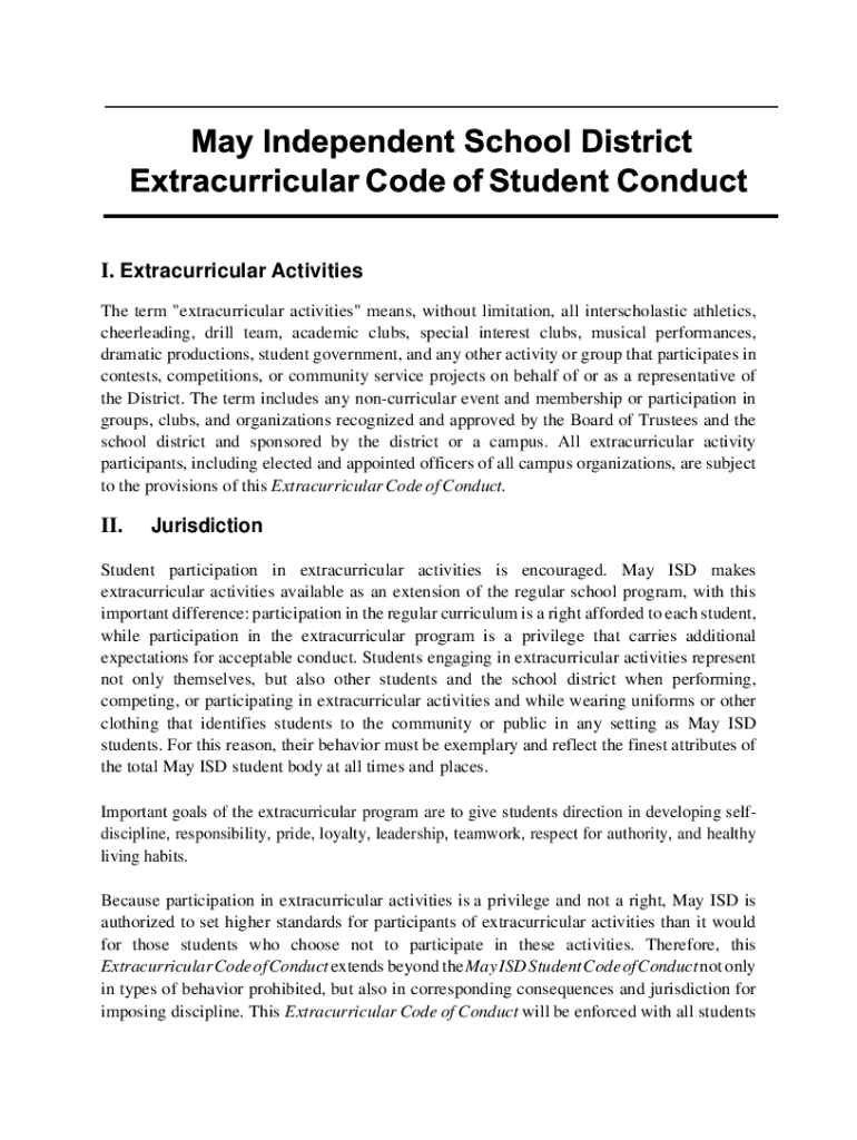 I. Extracurricular Activities The term extracurricular activities' means, without limitation, all interscholastic athletics, cheerleading, drill team, academic clubs, special interest clubs, musical
