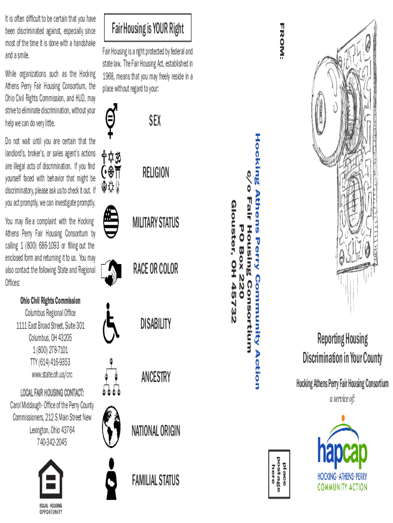 While organizations such as the Hocking Athens Perry Fair Housing Consortium, the Ohio Civil Rights Commission, and HUD, may strive to eliminate discrimination, without your help we can do very little.