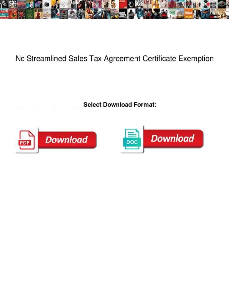 Get the free Nc Streamlined Sales Tax Agreement Certificate Exemption. Nc Streamlined Sales Tax A...