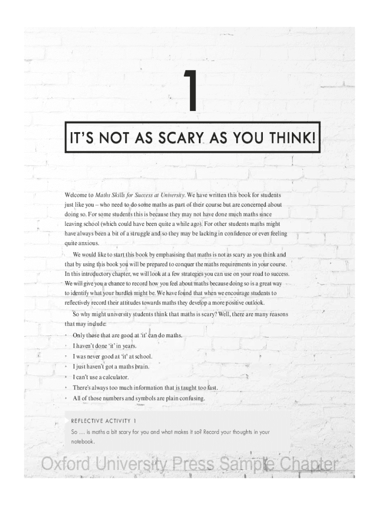 1 It's NOT AS SCARY AS MOUTHING! Welcome to Math Skills for Success at University. We have written this book for students just like you who need to do some math as part of their course but are concerned