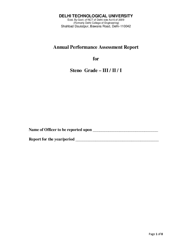 DELHI TECHNOLOGICAL UNIVERSITY ESD. By Govt. of NCT of Delhi vide Act 6 of 2009 (Formerly Delhi College of Engineering)Shah bad Daulatpur, Banana Road, Delhi110042Annual Performance Assessment Report