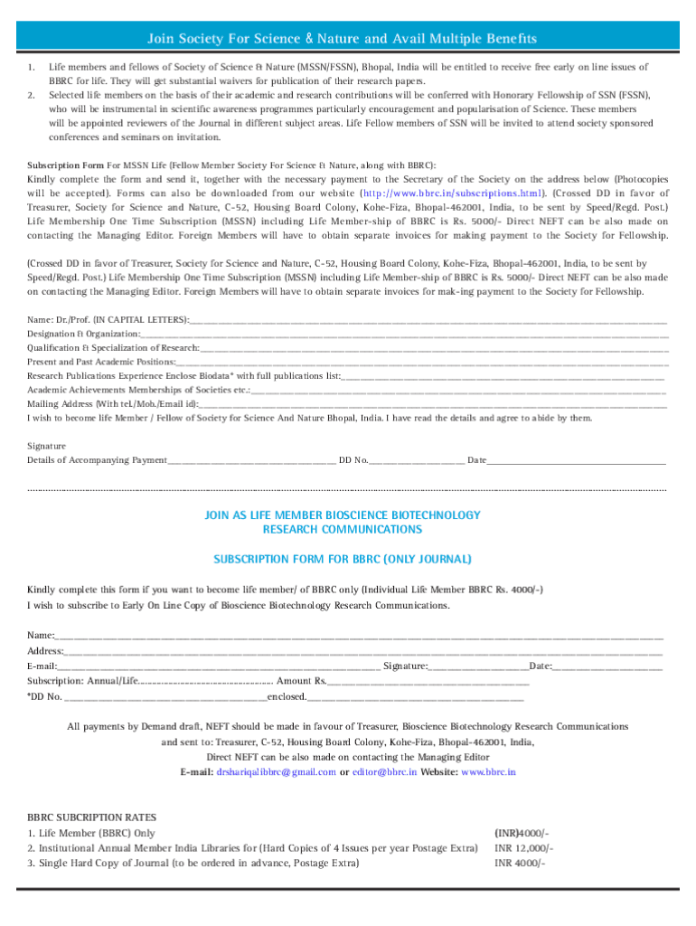 Join Society For Science & Nature and Avail Multiple Benefits 1. 2. Life members and fellows of Society of Science & Nature (MSN/ISSN), Bhopal, India will be entitled to receive free early online