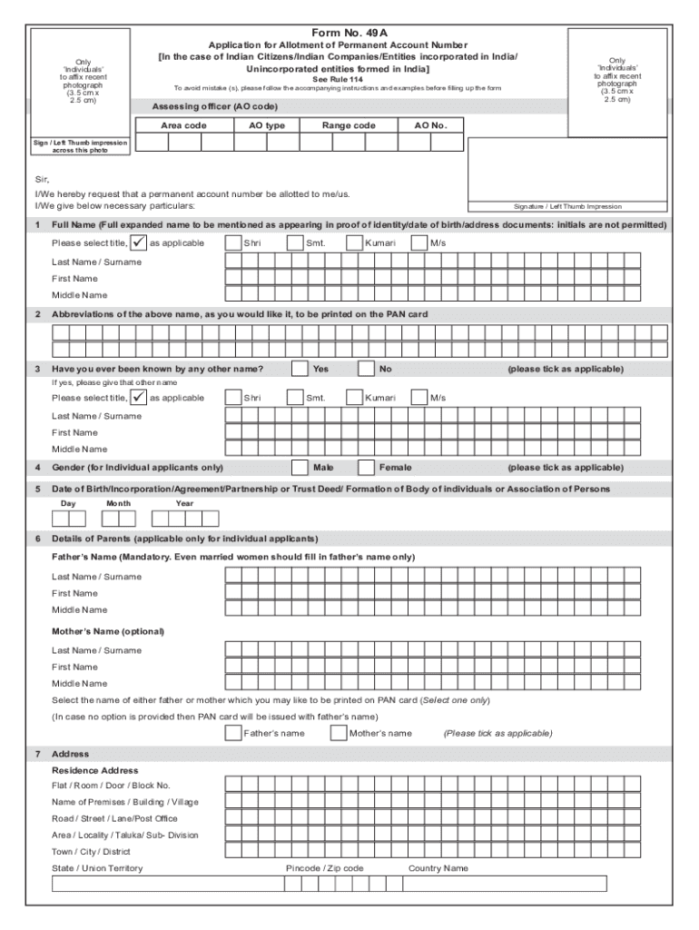 Form No. 49AApplication for Allotment of Permanent Account Number In the case of Indian Citizens/Indian Companies/Entities incorporated in India/ Unincorporated entities formed in India Only Individuals