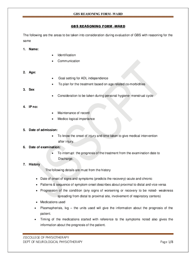 Get the free GBS REASONING FORM -WARD - jssphysiotherapy.edu.in
