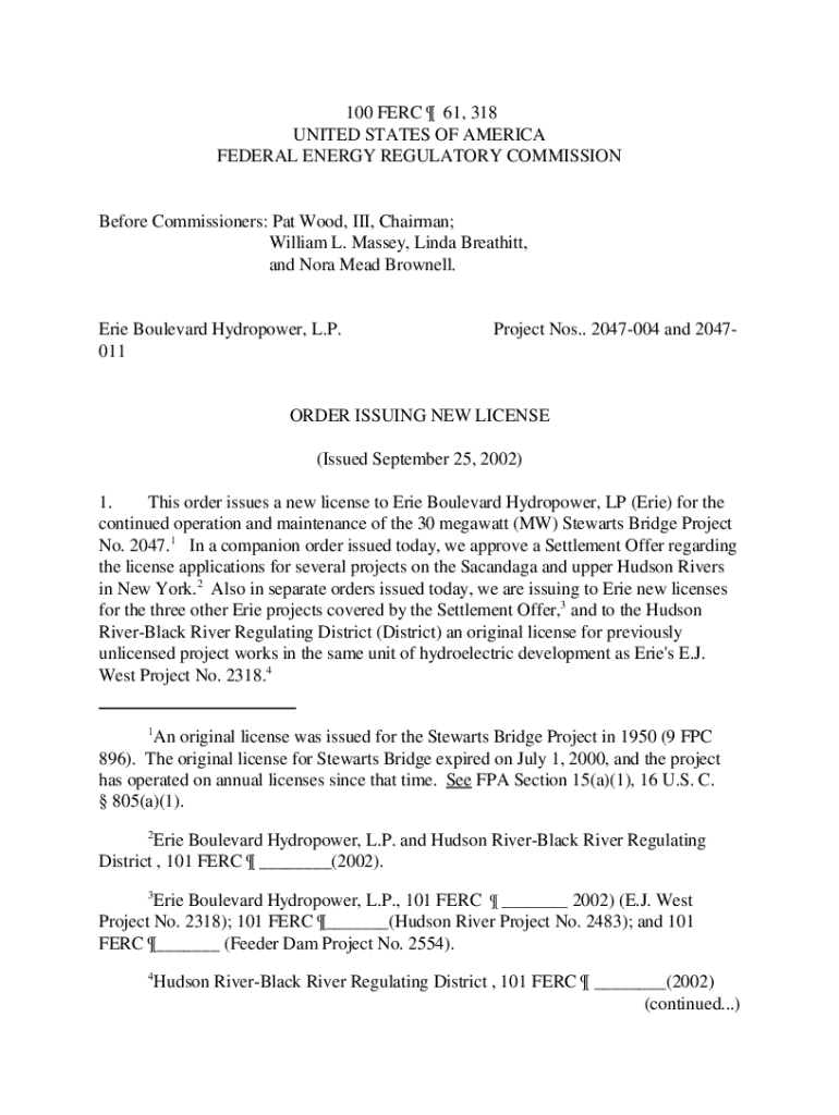 100 FERC 61, 318 UNITED STATES OF AMERICA FEDERAL ENERGY REGULATORY COMMISSIONBefore Commissioners: Pat Wood, III, Chairman; William L. Massey, Linda Breathing, and Nora Mead Brown ell. Erie Boulevard