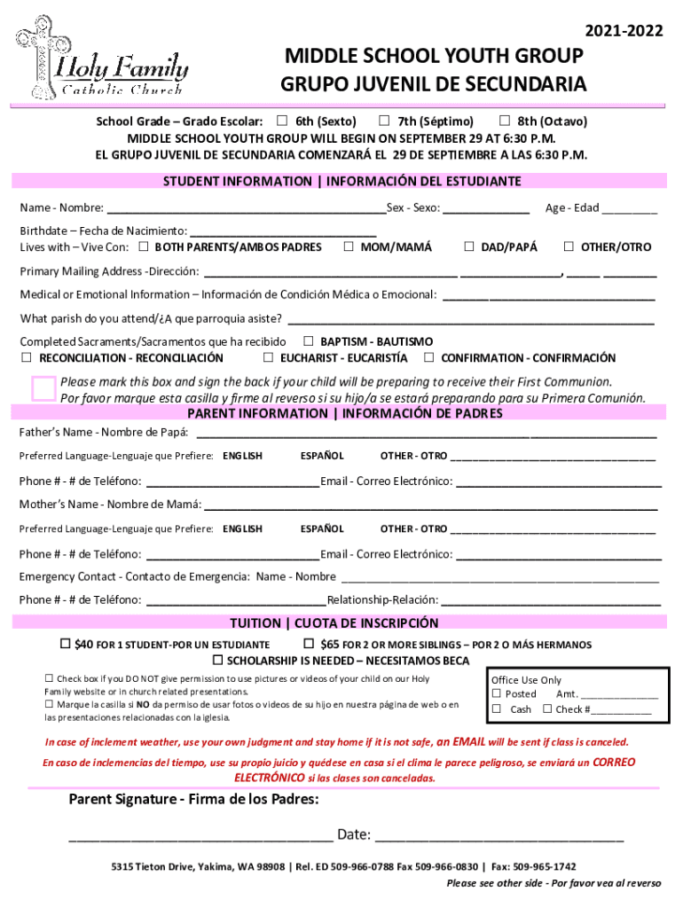 To fill out the grupo juvenil de secundaria form, individuals need to provide personal information, select their activities, and include any necessary endorsements from parents or guardians.