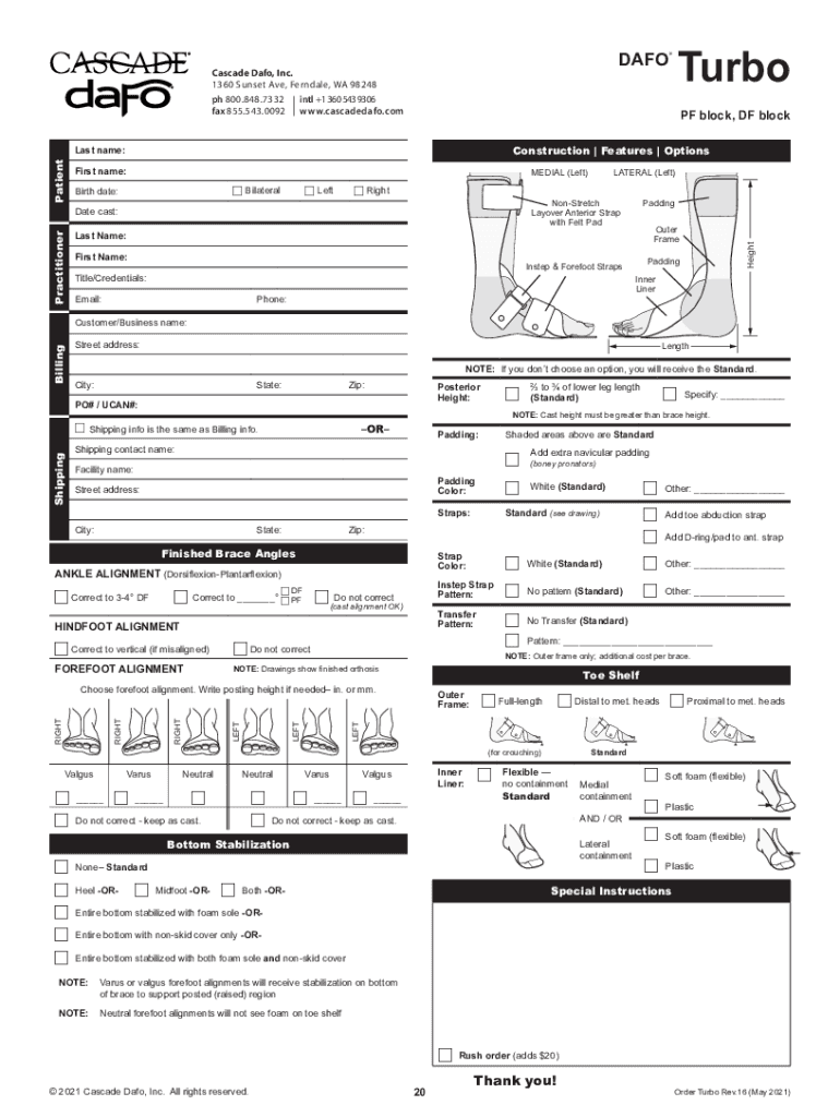 Clear Form Data TO ORDER 1) SAVE to desktop 2) Fill in form 3) Print and send with the patient's cast to Cascade OR, fill in your order details at orders.cascaded.comDAFOCascade Dado, Inc. 1360 Sunset