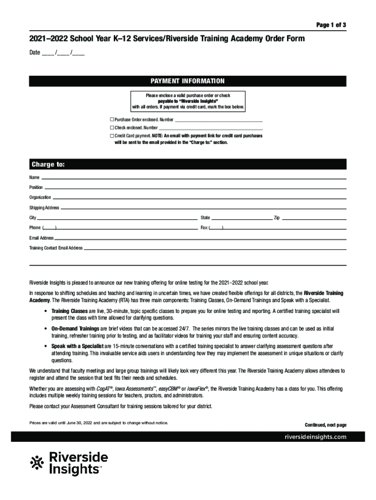 Riverside Training Academy Order Form 20212022 School Revisit https://tinyurl.com/orderRTA to order training online! We accept purchase orders and credit cards. Page 1 of 320212022 School Year K12