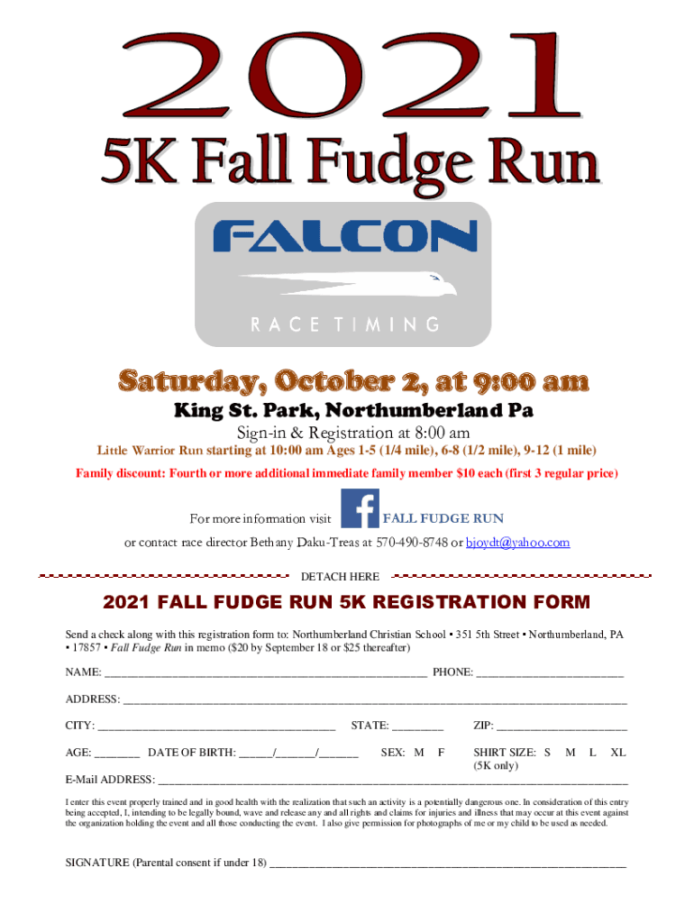 Get the free 5K Fall Fudge Run - Northumberland Christian School