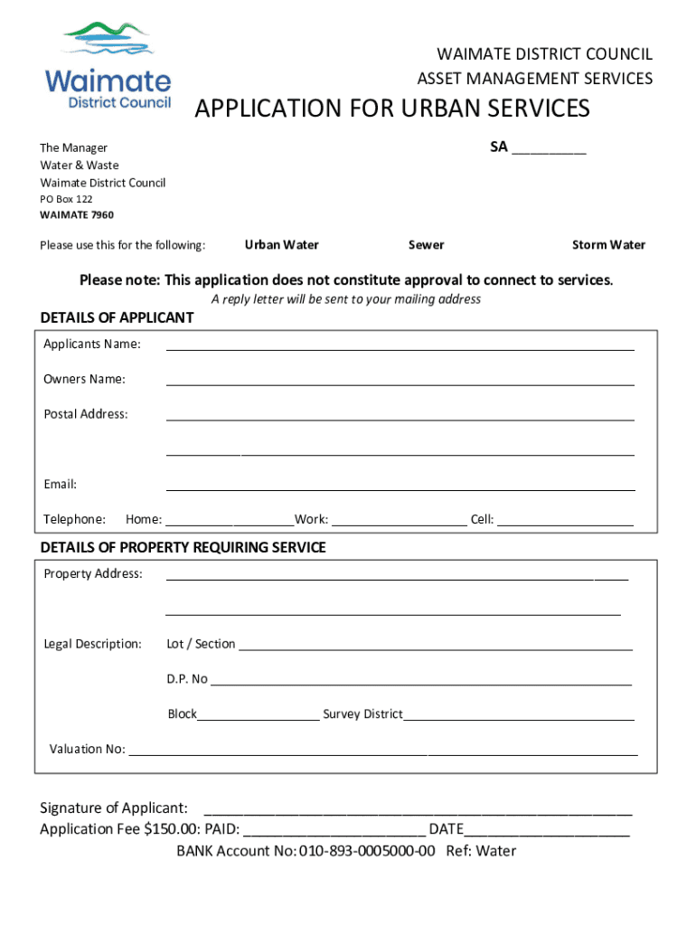 CLIMATE DISTRICT COUNCIL ASSET MANAGEMENT SERVICESAPPLICATION FOR URBAN SERVICES SA The Manager Water & Waste Climate District Council PO Box 122 CLIMATE 7960Please use this for the following:Urban