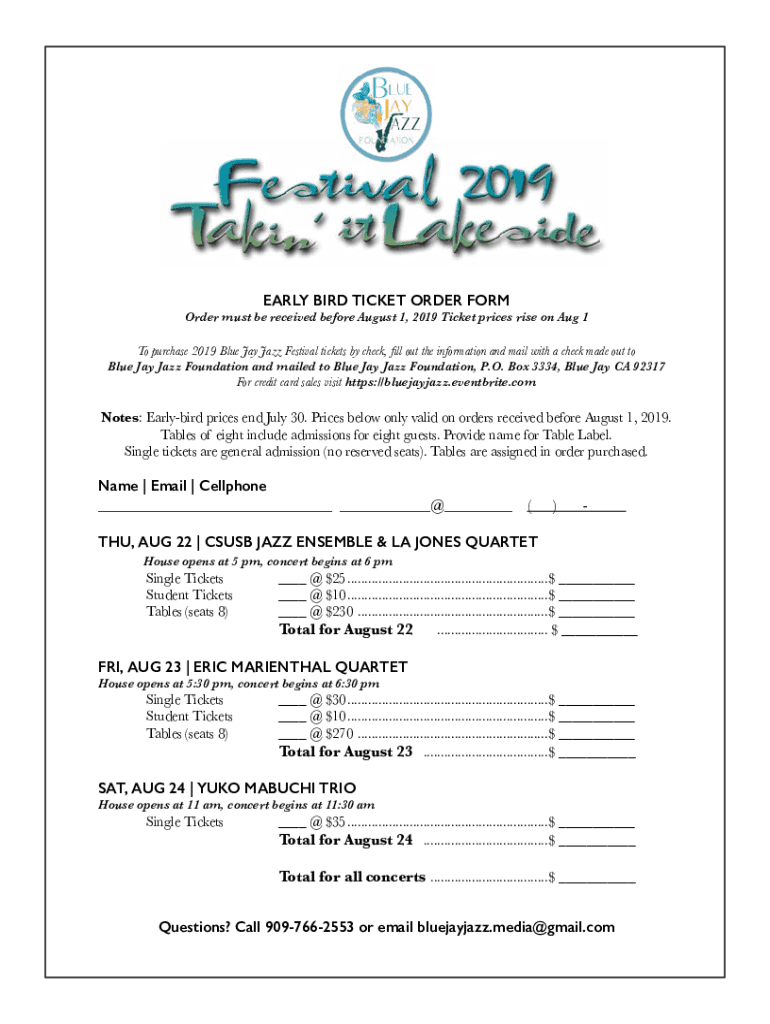 Get the free EARLY BIRD TICKET ORDER FORM Order must ... - bluejayjazz.org