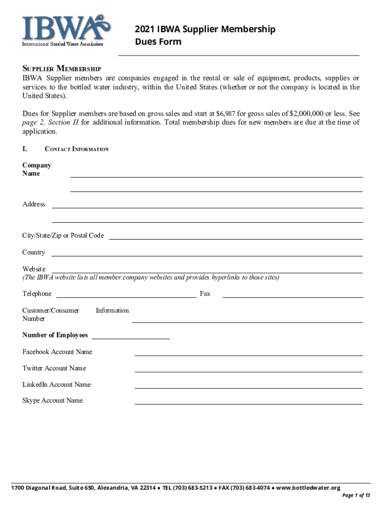 Get the free IBWA International Membership Dues Form - Bottled Water ...
