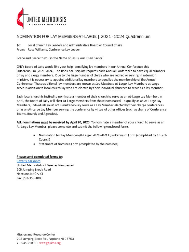 Nomination For Lay Members-At-Large is not the form you're looking for?Search for another form here.