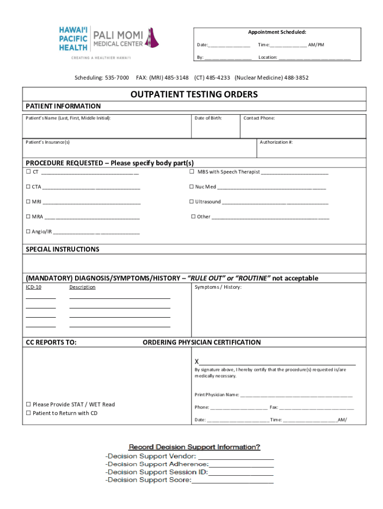 Get the free IMAGING OUTPATIENT ORDER FORM - Hawaii Pacific Health