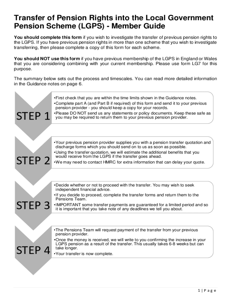 Transfer of Pension Rights into the Local Government Pension Scheme (LAPS) Member Guide You should complete this form if you wish to investigate the transfer of previous pension rights to the LAPS.