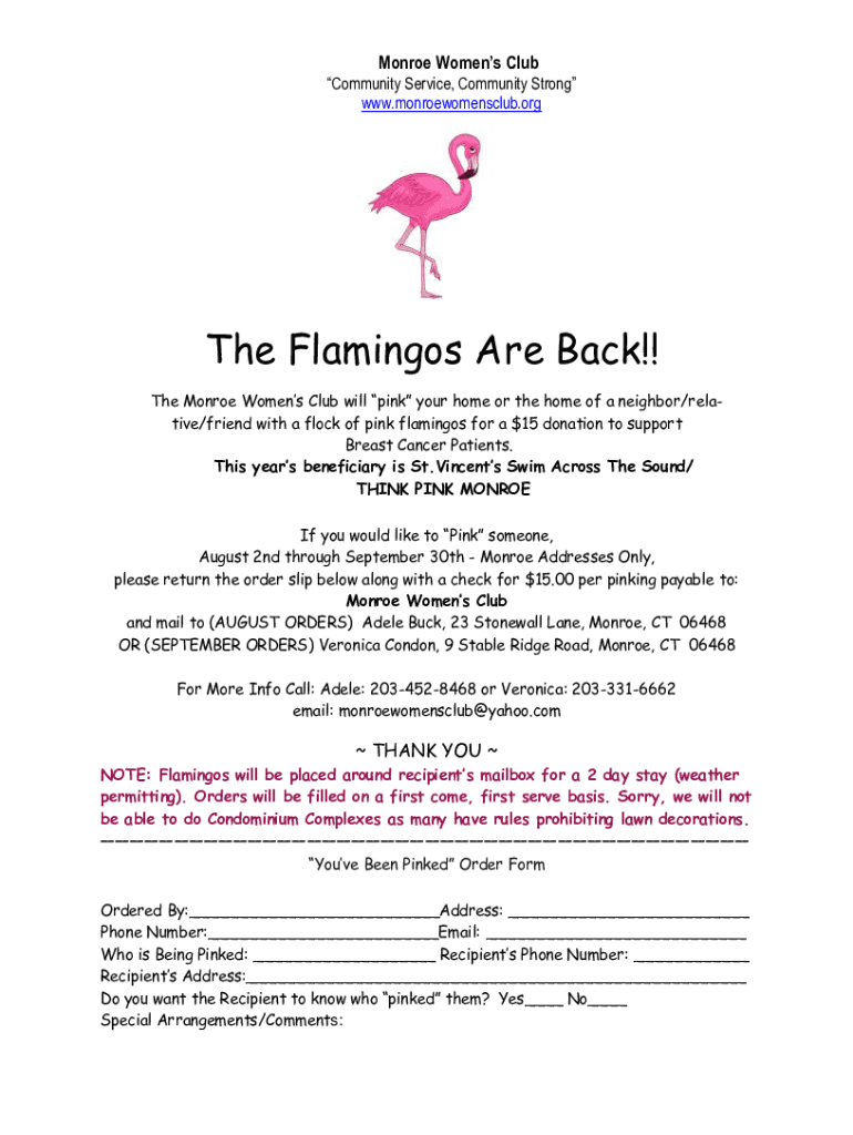 Get the free The Flamingos Are Back!! - monroewomensclub.org