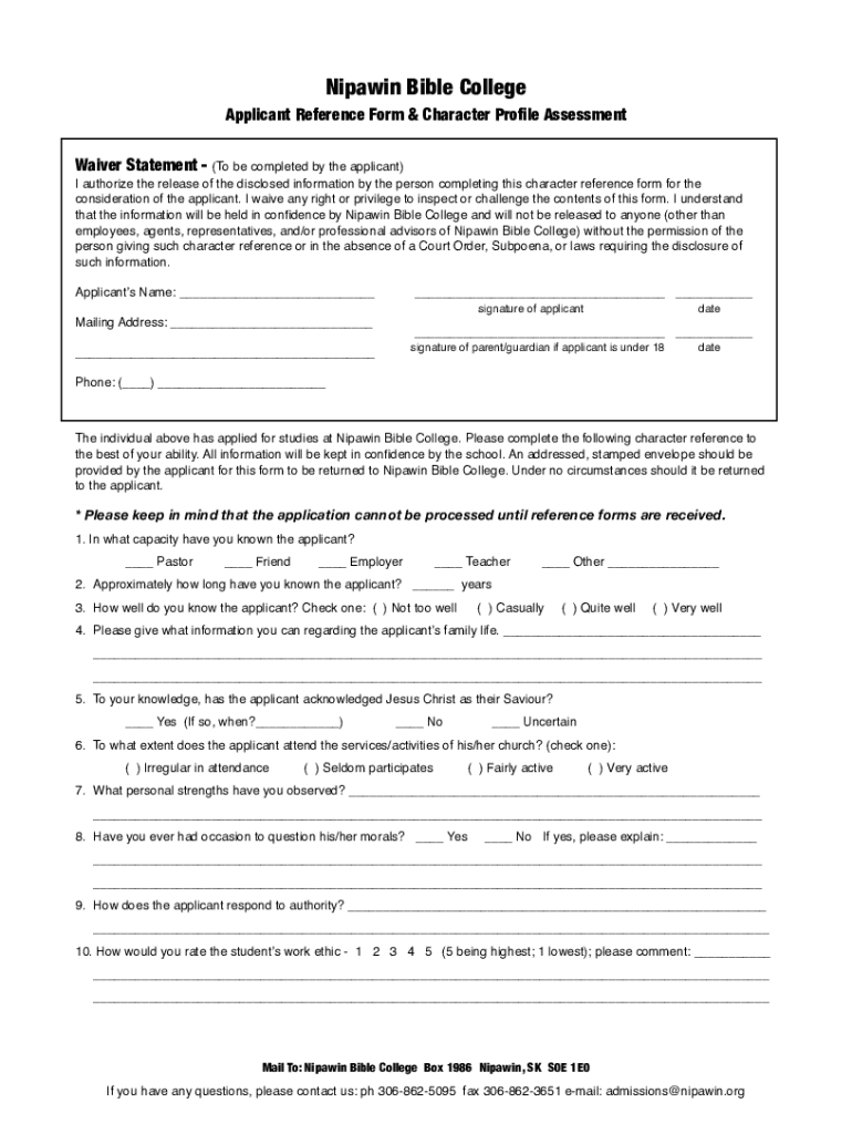 Fill out your nipawinorgadmissionsadmissions-referenceapplicant reference form ampamp online with pdfFiller!