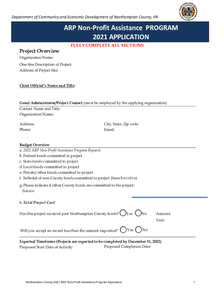 Department of Community and Economic Development of Northampton County, PAAR Nonprofit Assistance PROGRAM 2021 APPLICATION Project OverviewFULLY COMPLETE ALL SECTIONSOrganization Name: Online Description