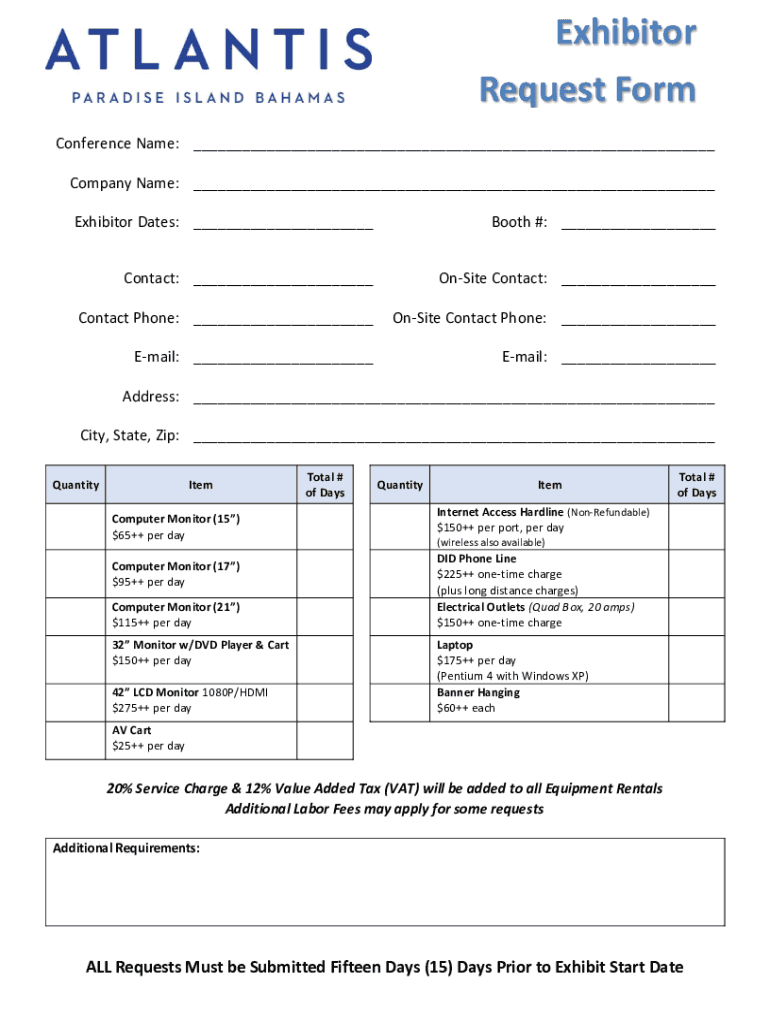Exhibitor Request Form Conference Name: Company Name: Exhibitor Dates: Booth #: Contact: Onsite Contact: Contact Phone: Onsite Contact Phone: Email: Email: Address: City, State, Zip: Quantities Computer