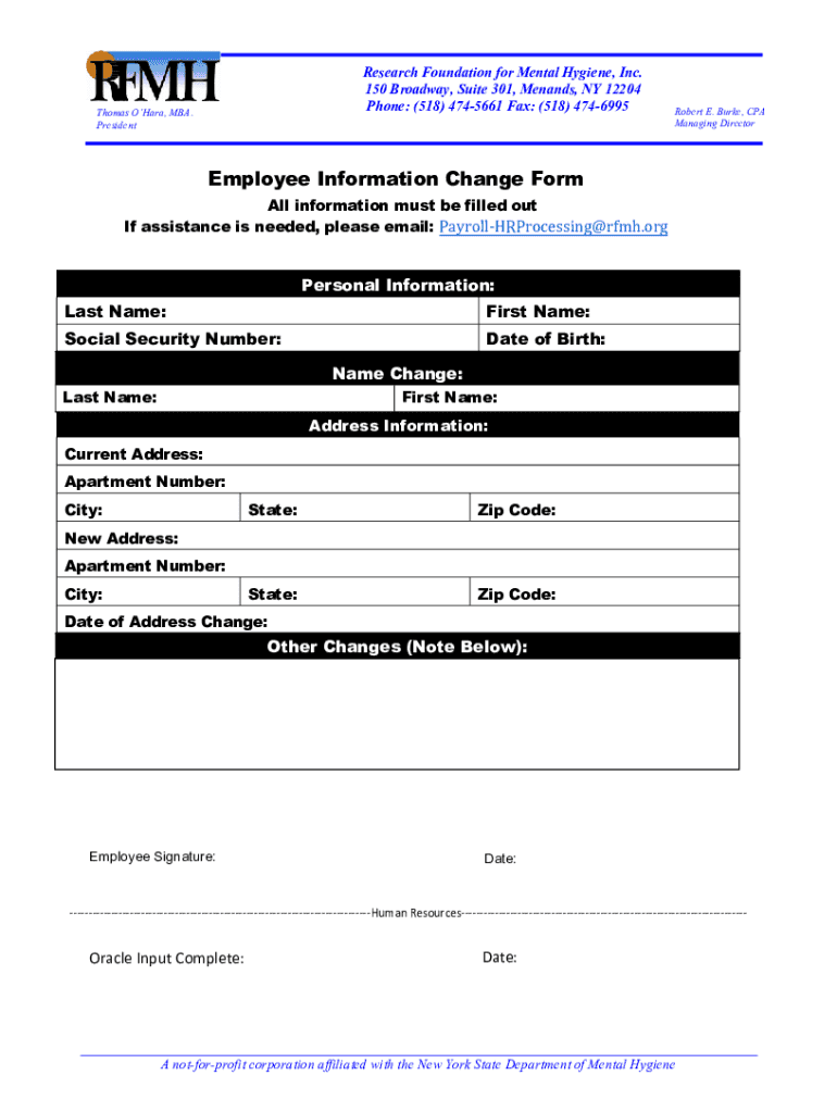Research Foundation for Mental Hygiene, Inc. 150 Broadway, Suite 301, Means, NY 12204 Phone: (518) 4745661 Fax: (518) 4746995Thomas Hara, MBA. President Robert E. Burke, CPA Managing DirectorEmployee