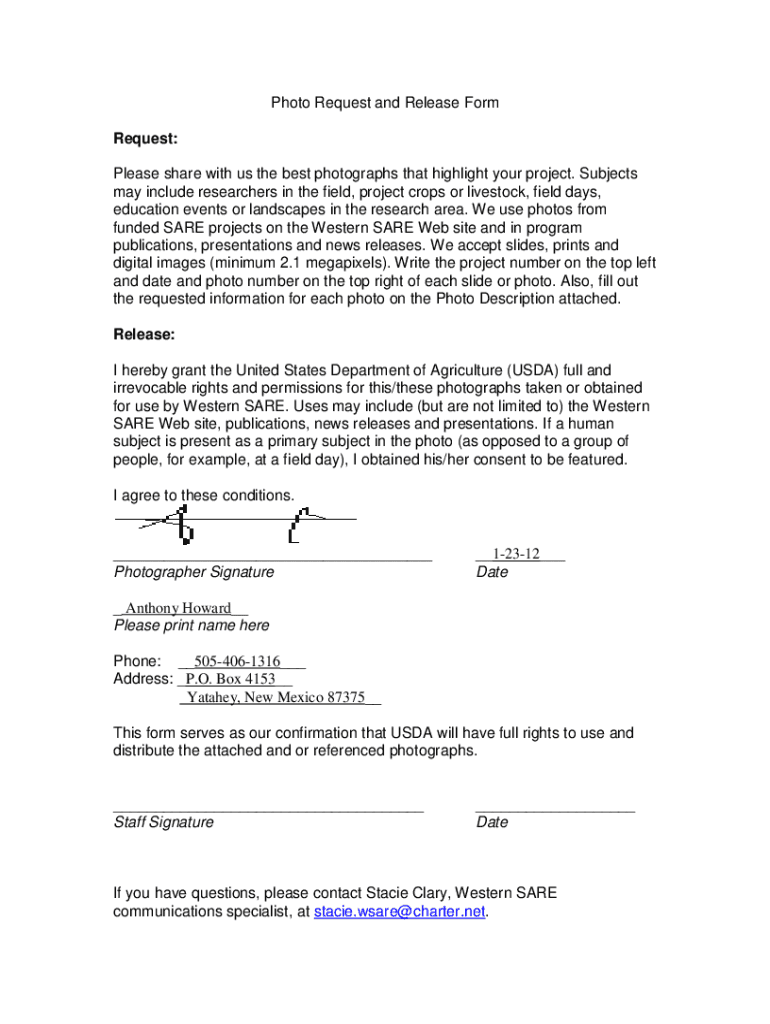 Photo Request and Release Form Request: Please share with us the best photographs that highlight your project. Subjects may include researchers in the field, project crops or livestock, field days,