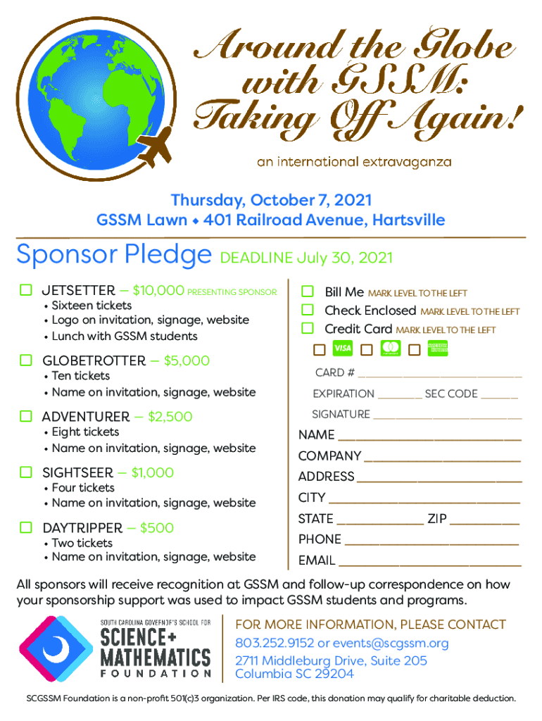 Thursday, October 7, 2021, SSM Lawn 401 Railroad Avenue, HartsvilleSponsor Pledge DEADLINE July 30, 2021, NEWSLETTER $10,000 PRESENTING SPONSOR Sixteen tickets Logo on invitation, signage, website