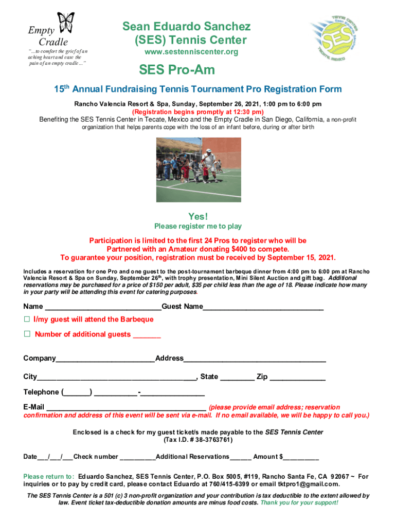 Empty Cradle to comfort the grief of an aching heart and ease the pain of an empty cradle Sean Eduardo Sanchez (SES) Tennis Center www.sestenniscenter.orgSES ProAm15th Annual Fundraising Tennis Tournament