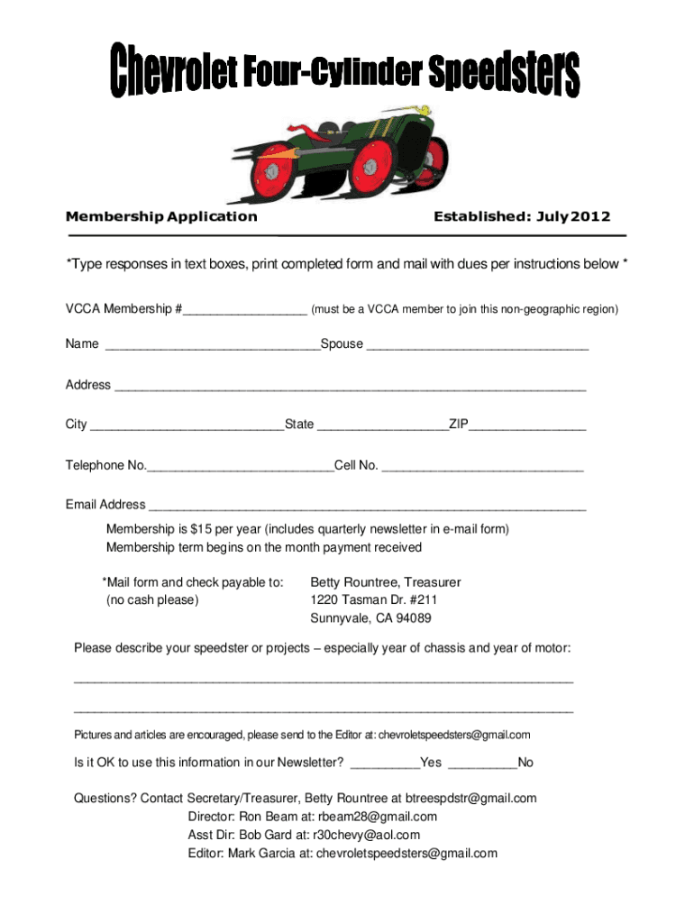 Membership ApplicationEstablished: July 2012×Type responses in text boxes, print completed form and mail with dues per instructions below * CCA Membership # (must be a CCA member to join this nongeographic
