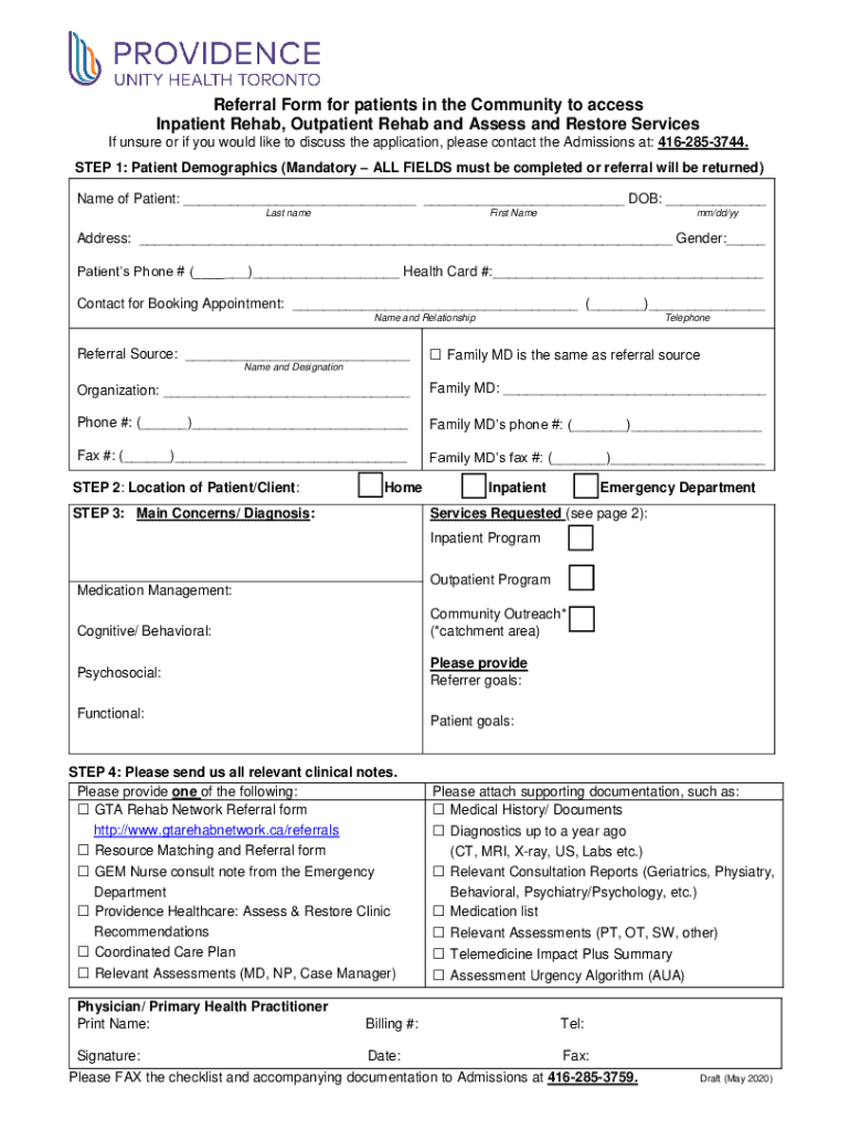 Get the free Referral from for patients in the community to access inpatient rehab, outpatient re...