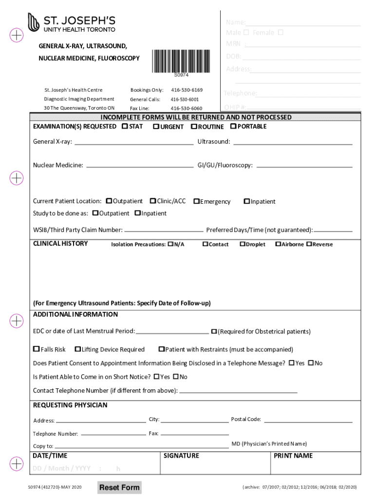 Name: Male Female MAN :P2901 S0974GENERAL RAY, ULTRASOUND, DOB:NUCLEAR MEDICINE, FLUOROSCOPYAddress:P2901 S0974St. Josephs Health CentreBookings Only:4165306169Diagnostic Imaging DepartmentGeneral