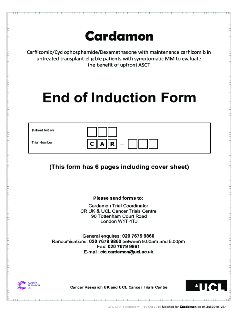 Cardamon // with maintenance in untreated transplant eligible patients with symptomatic MM to evaluate the benefit of upfront Ascend of Induction Form Patient Initials Trial Number(This form has 6