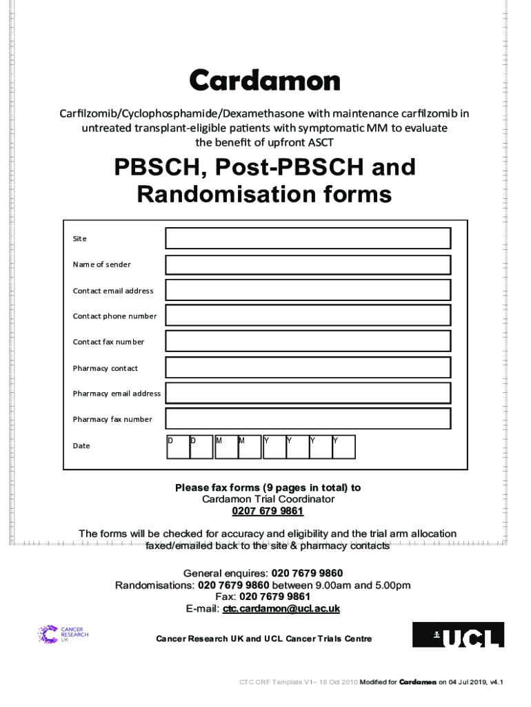 Cardamon // with maintenance in untreated transplant eligible patients with symptomatic MM to evaluate the benefit of upfront ASCTPBSCH, Postpose and Randomization forms Site Name of sender Contact