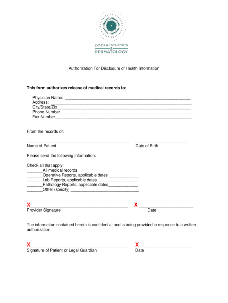The patient or their legal guardian is required to file a medical records authorization form in order to release their medical records.