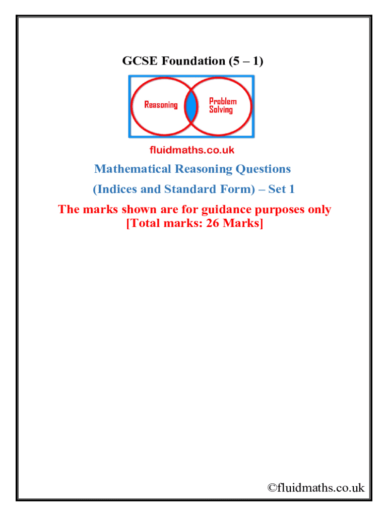 GCSE Foundation (5 1)Mathematical Reasoning Questions (Indices and Standard Form) Set 1 The marks shown are for guidance purposes only Total marks: 26 Marks floodgates.co.uk1Choose the numbers which