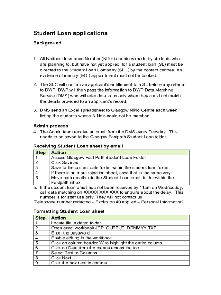Student Loan applications Background 1. All National Insurance Number (Niño) inquiries made by students who are planning to, but have not yet applied, for a student loan (SL) must be directed to