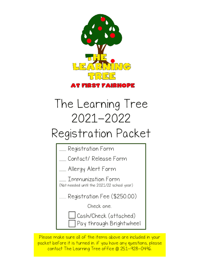 The Learning Tree 20212022 Registration Packet Registration Form Contact/ Release Form Allergy Alert Form Immunization Form (Not needed until the 2021/22 school year)Registration Fee ($250.00) Check