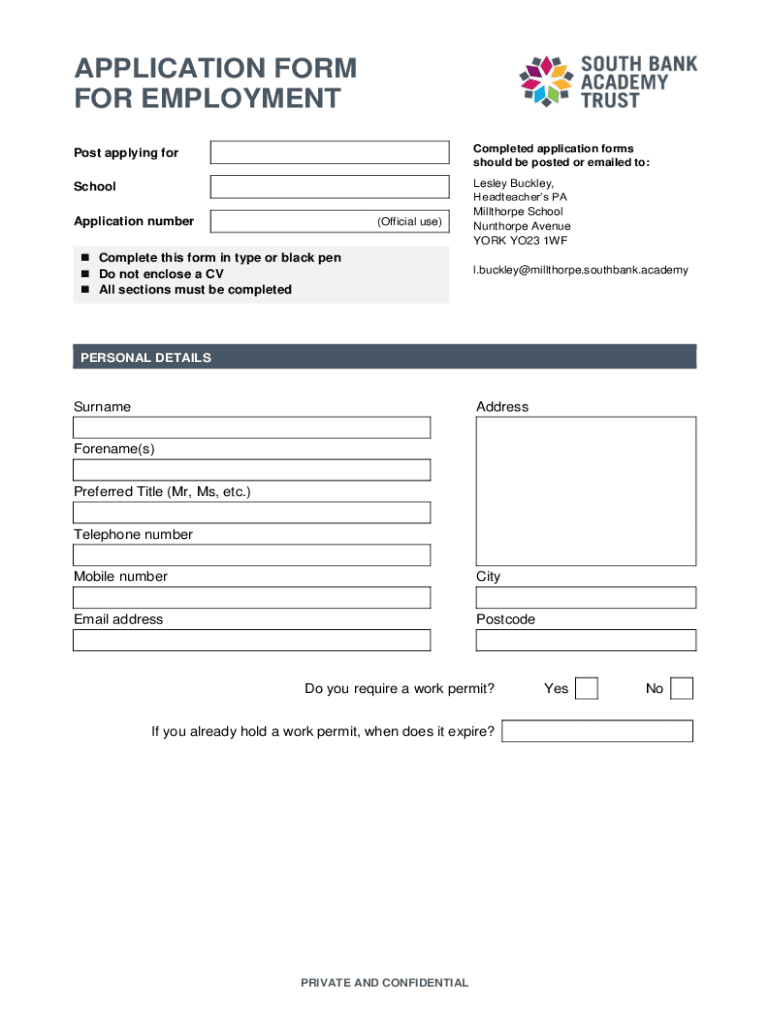 Get the free APPLICATION FORM FOR EMPLOYMENT - millthorpeschool.co.uk
