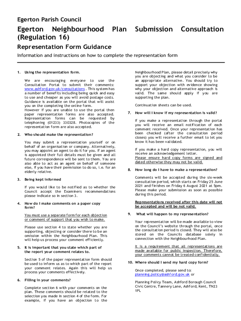 Get the free Neighbourhood Plan consultation representation form guidance - haveyoursay ashford gov