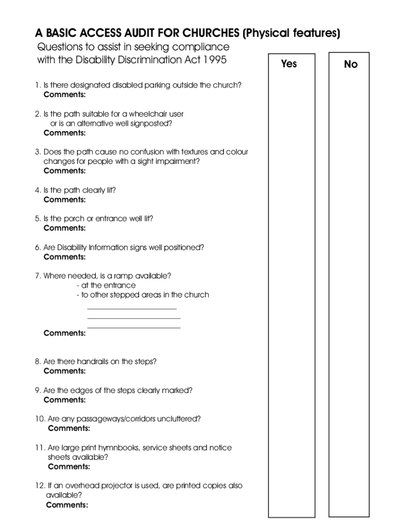 Get the free Disability Awareness Access Audit Form - Truro Diocese - trurodiocese org
