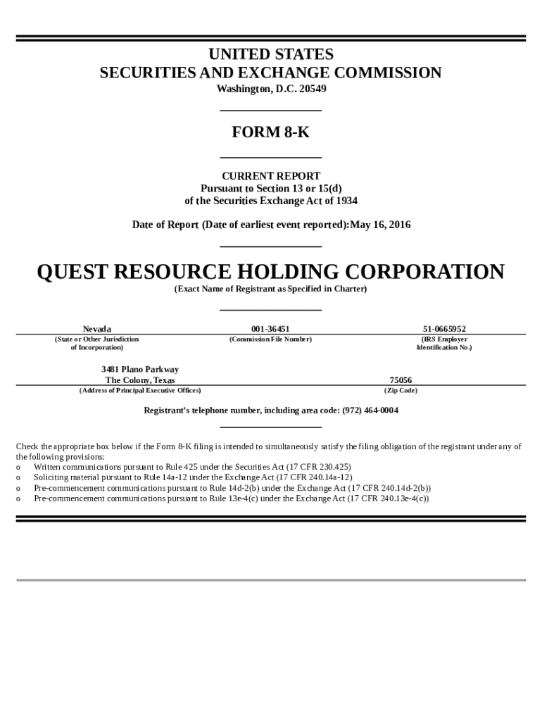 Instructions for the We are furnishing this Current Report on 8-K in connection with the disclosure of ination, in the of the textual ination from a press release released on May 16, 2016 form