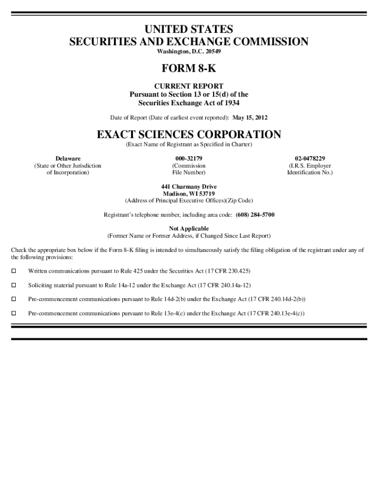 Get the free On May 15, 2012 (the Effective Date), Exact Sciences Corporation (the Company) enter...