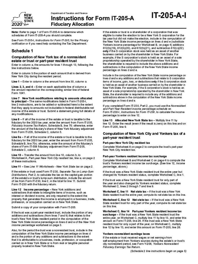 Department of Taxation and FinanceInstructions for Form IT205A Fiduciary Allocation Note: Refer to page 1 of Form IT205A to determine which schedules of Form IT205A you should complete. See Form IT205I,