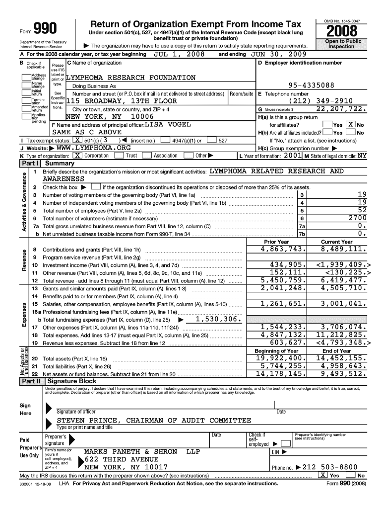 Form 990 is an essential IRS document used by tax-exempt organizations to report their financial activities. Its primary purpose is to ensure transparency and accountability in the operations of nonprofit entities. Specifically for the year 2008, this version of Form 990 pertains to the Lymphoma Research Foundation, illustrating its financial dealings and compliance with IRS regulations. Understanding this form is crucial for organizations aiming for continued tax-exempt status.