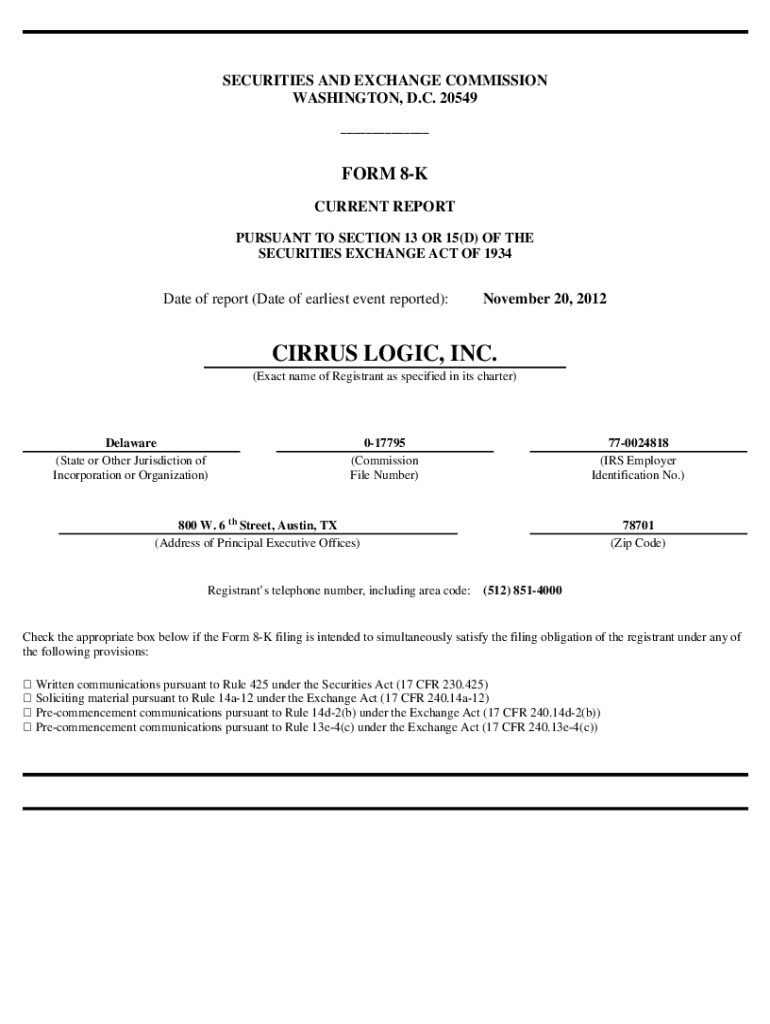 SECURITIES AND EXCHANGE COMMISSION WASHINGTON, D.C. 20549 FORM 8K CURRENT REPORT PURSUANT TO SECTION 13 OR 15(D) OF THE SECURITIES EXCHANGE ACT OF 1934Date of report (Date of the earliest event reported):November