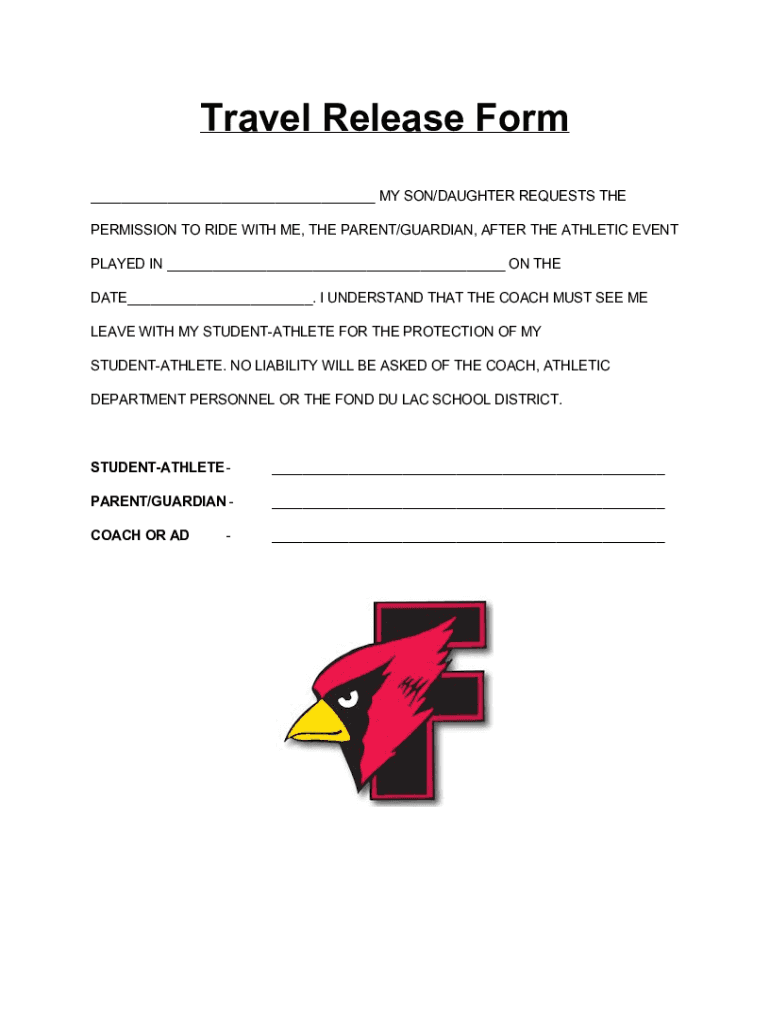 WI Fond du Lac School District Travel Release Form 2016-2026 free printable template