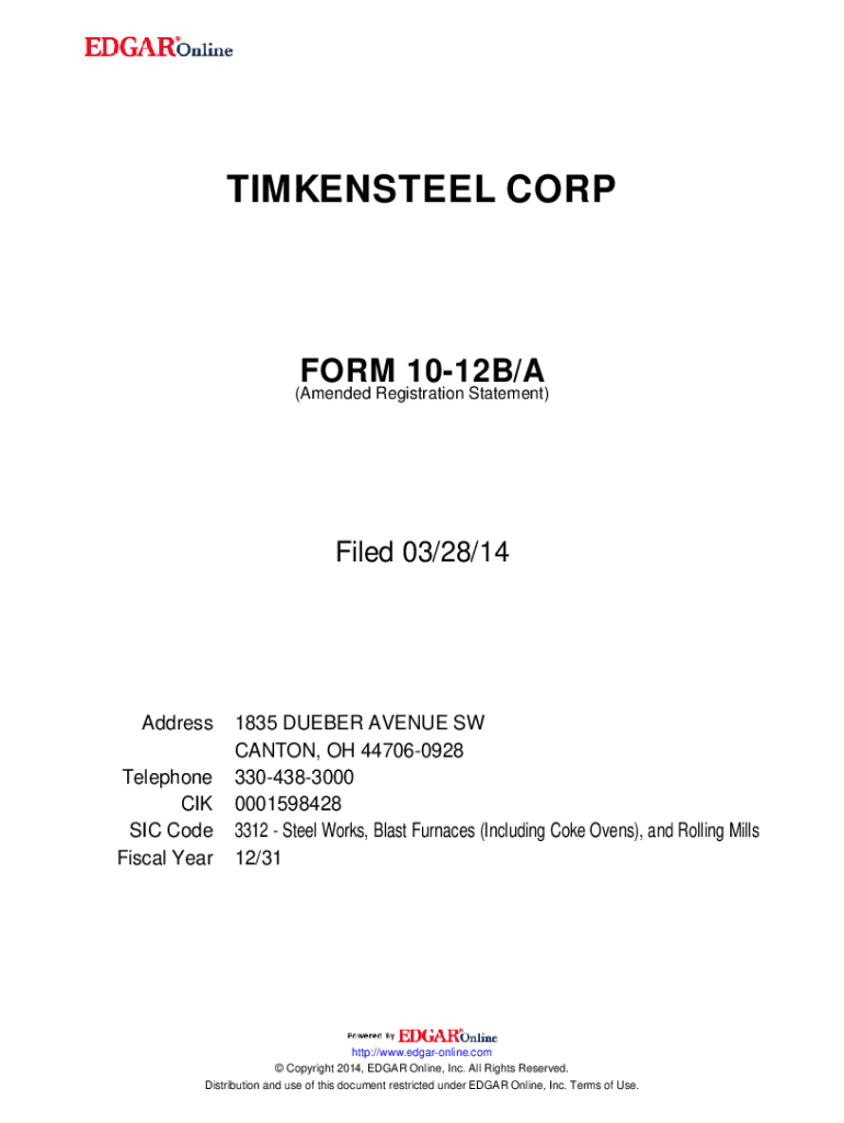 Get the free TIMKENSTEEL CORP. FORM 10-12B/A (Amended Registration Statement) Filed 03/28/14