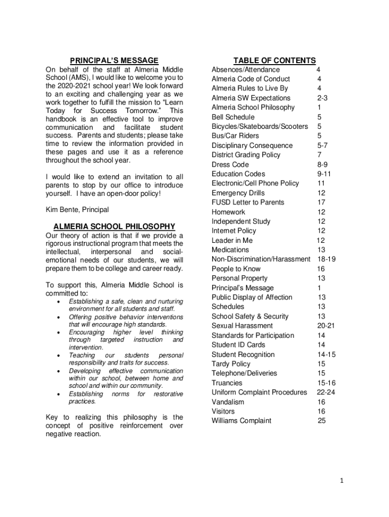 Get the free www.pdffiller.com60245412--principals-messagefillable online principal's message alm...