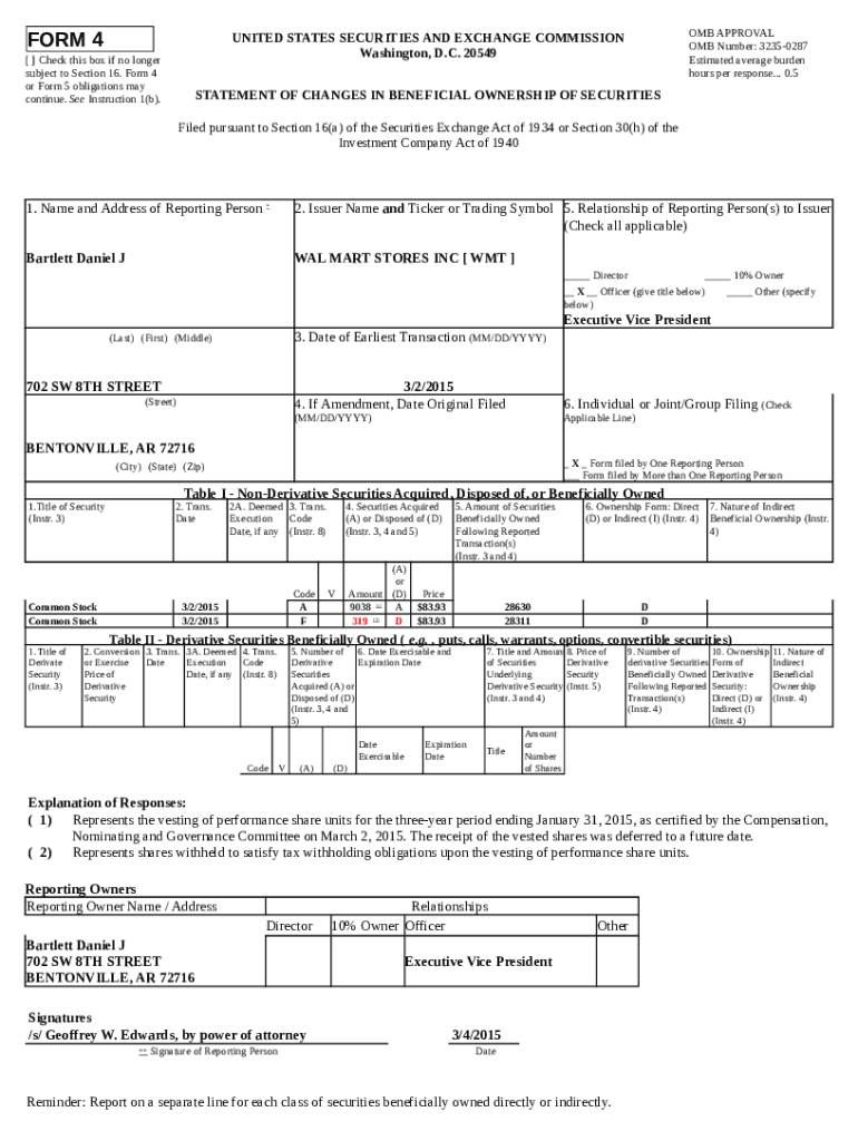 Instructions for the form Represents the vesting of perance share units for the three-year period ending January 31, 2015, as certified by the Compensation, Nominating and Governance Committee on March 2, 2015