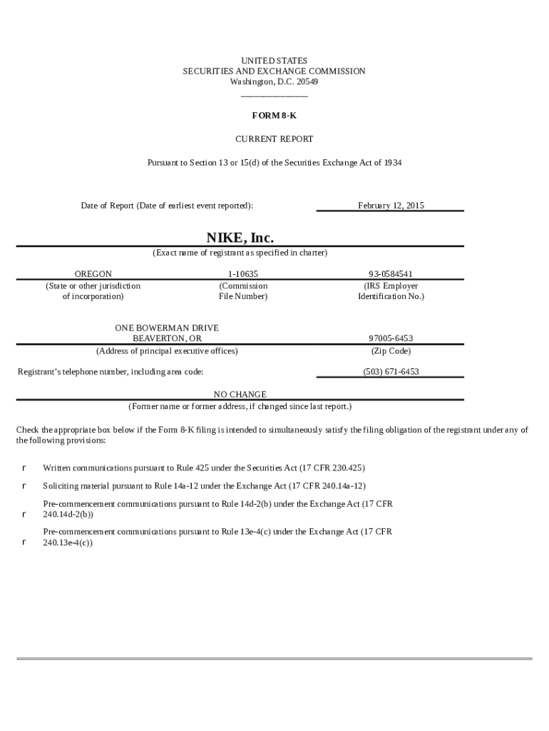 What is NIKE INC (: 8-K, Received: 02/12/2015 17:18:30) - cloudfront.net Form?